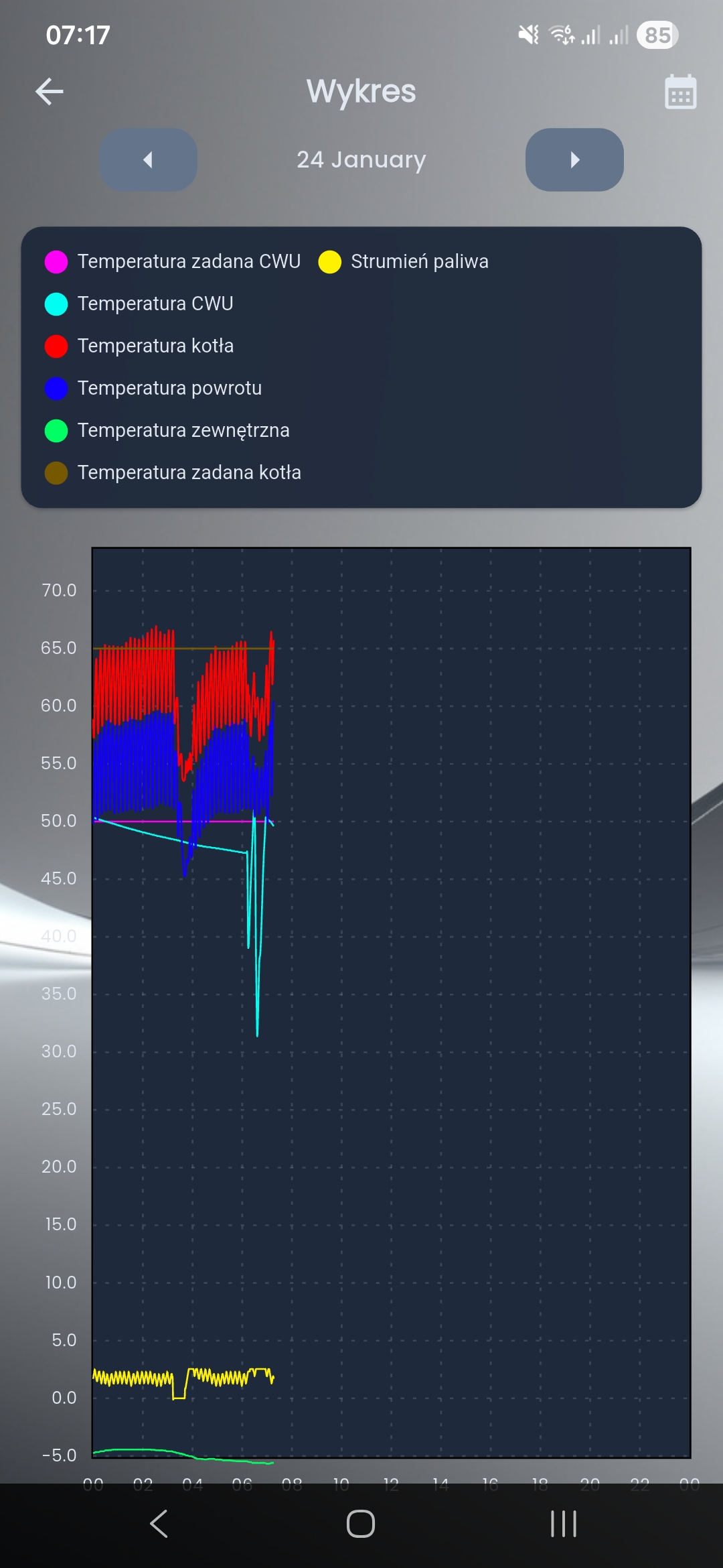 ![]() Brak możliwości wyskalowania dolnych wartości jak ich odczytanie na wykresie, weryfikowałem na dwóch urządzeniach i wygląda podobnie nawet wyłączenie dolnego paska nic nie daje. Nie znalazłem nigdzie zakładki ani możliwości sterowania recznego jak w poprzedniej aplikacji i fajnie jakby sterowanie reczne bylo bardziej rozbudowane tak jak na ekranie sterownika przy piecu. Czasami trzeba cos zrobić ręcznie i w aplikacji każdy "bawi sie" więcej niż przy piecu a co za tym idzie szybciej odnajdzie poszukiwane funkcje |