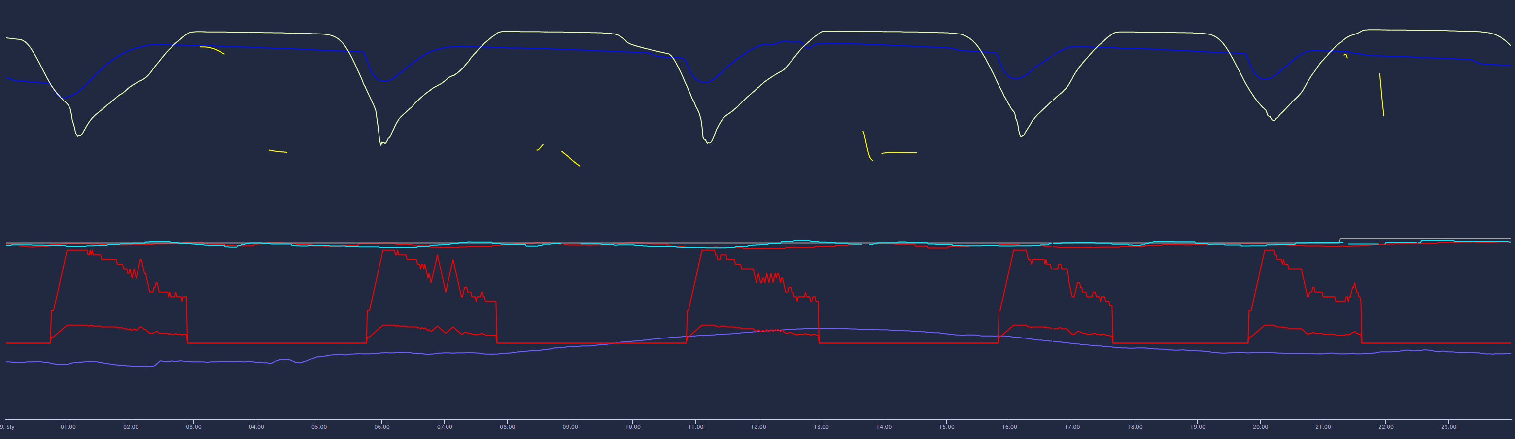 Jak w temacie, od jakiegoś czasu znikły mi wykresy z dolnej temperatury bufora. Czujnik sprawny bo w statusie pokazuje zarówno górną jak i dolną temperaturę bufora. Ktoś ma podobny problem? dodane 2026-01-21 13:01Dodam, że raz dziennie lub kilka razy dziennie coś tam wyrysuje na wykresie, ale nie wiem od czego to zależne jest :/ dodane 2026-01-21 14:52Tak to wygląda dodane 2026-01-21 14:52 ![]()