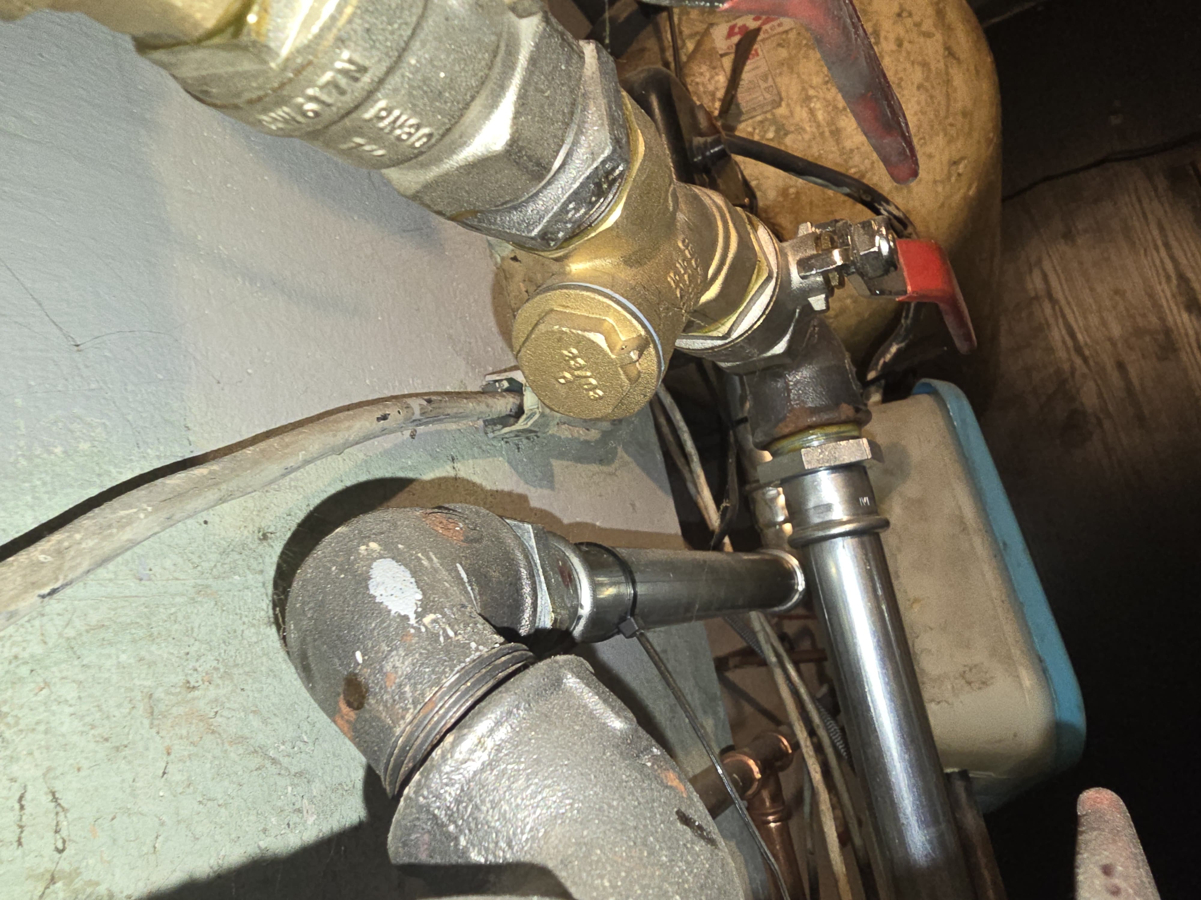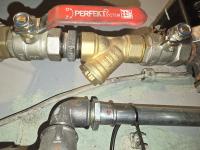 Witam! Na zdjęciu nie widać tego do końca wyraźnie, więc mogę się tylko domyślać, ale wygląda na to, że masz filtr skośny na powrocie, między tymi dwoma zaworami po prawej Możliwe, że jest przytkany. Jeśli to faktycznie filtr: wyłącz kocioł, zamknij zawory, odkręć filtr i dokładnie go wyczyść. |