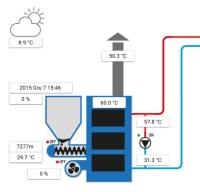 Najpierw sterownik zrzuca nadmiar ciepła na CWU. Jednak jest pewien haczyk. Temperatura CWU musi być niższa niż 60 stopni. Przy zrzucaniu na CWU podgrzewa wodę do maksymalnie 63 stopni. Spójrz na zadaną temperaturę CWU. Widzisz przerwy w lini? To momenty, kiedy sterownik chciałby wykorzystać CWU do redukcji temperatury kotła. Jednak temperatura CWU jest zbyt wysoka i nie może tego zrobić, więc przy 80 stopniach otwiera zawór. Twój kocioł wpada w huśtawkę. Najpierw się przegrzewa, a potem zalany zimną wodą z grzejników rozgrzewa się zbyt mocno i tak w kółko. Masz ustawiony tryb spalania eCoal na 60 stopni. To oznacza, że kocioł grzeje do 65 stopni. To dobrze z punktu widzenia ochrony kotła przed korozją i z punktu widzenia komina, ale powoduje to teraz przegrzewanie, bo nie masz odpowiedniego odbioru ciepła. Dodatkowo strzelam, że masz mały bojler. Duży byłby w stanie zebrać nadmiar ciepła i wyhamować wzrost temperatury kotła. Tak jak u nas się dzieje. Widzę, że ochronę powrotu masz przez pompę mieszającą. Czy jest ona fizycznie w układzie zamontowana? Jeżeli tak, to zmień opcję pompy dodatkowej na "Pompa kotłowa". Wtedy dodatkowa pompa będzie działała cały czas i zbijała temperaturę kotła dogrzewając powrót. Tak, jak u nas. Możesz też trochę obniżyć temperaturę zadaną kotła. |